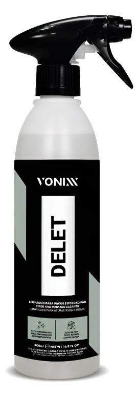 Delet é um limpador de alta performance, formulado exclusivamente para remover sujidade severa em pneus e borrachas, garantindo total limpeza, desenvolvendo originalidade e sem deixar aspecto acinzentado. Essa limpeza ajudará a melhorar a performance dos produtos para condicionar os pneus.